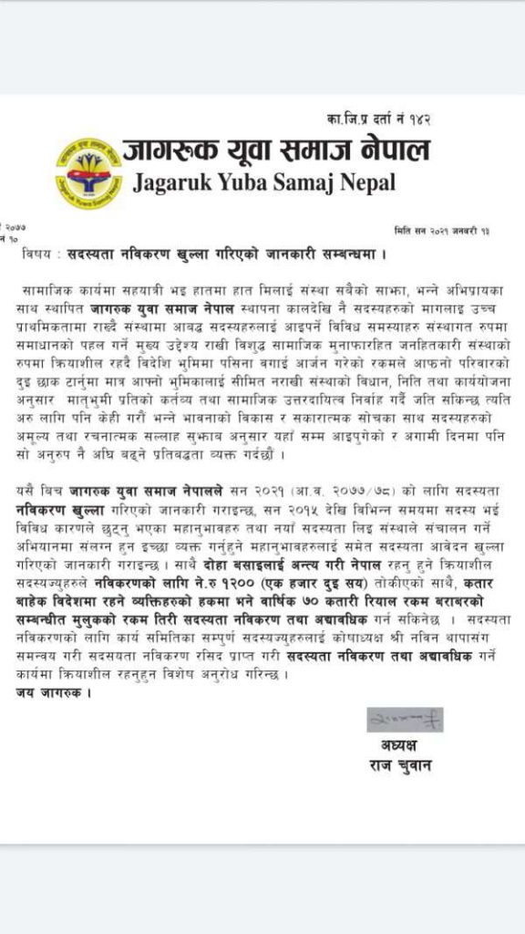 सदस्य नविकरण गर्न हार्दिक अपिल